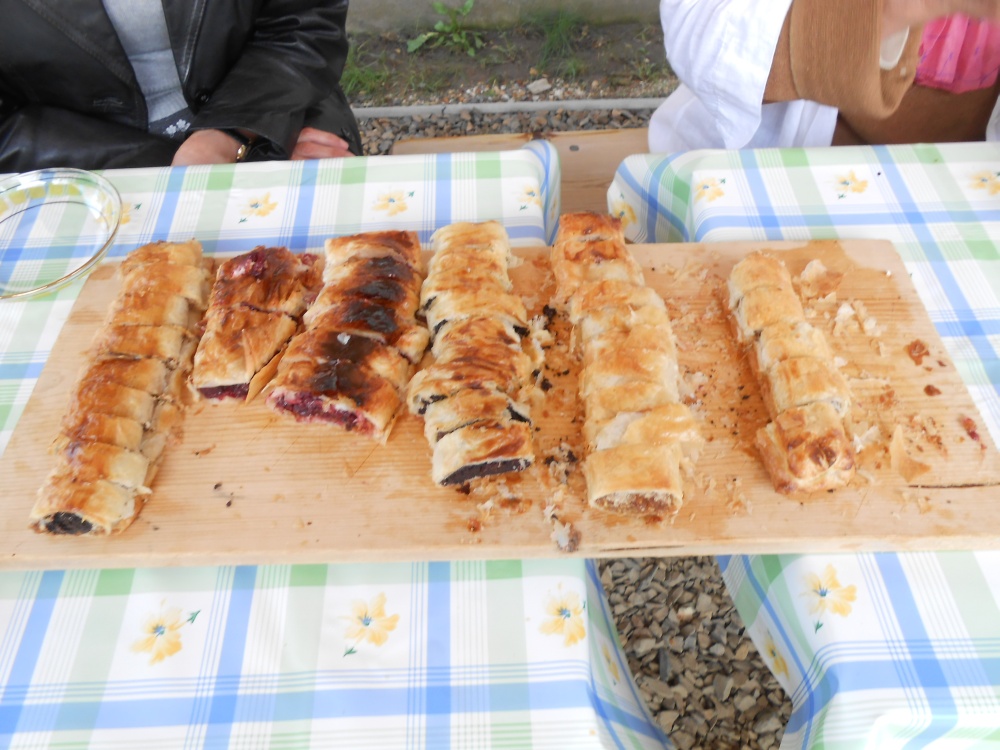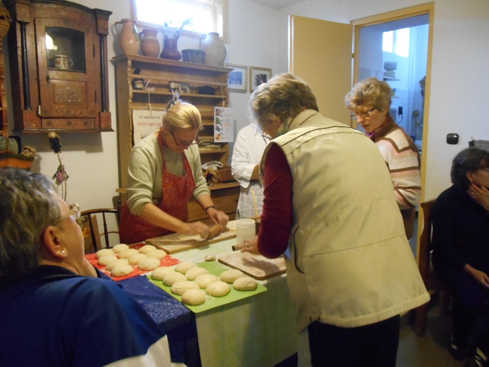 rétesnapKellemes napsütéses őszi vasárnap. Ezen a délelőttön összegyűltünk, hogy más szövőtársainkkal együtt felelevenítsük a rétes tészta készítés fortélyait és a hagyományos módon készítsük el ezt a finom süteményt.Ma már jószerivel csak az idősek ismerik a tészta készítésének lépéseit, hiszen hosszadalmas és gyakorlatot igénylő munkáról van szó. A mai háziasszonyok munkáját megkönnyíti, hogy a boltokban meg lehet venni a kész nyerstésztát. Mi együtt készítettük el – egymást is tanítva - és utána együtt fogyasztottuk el ezt a mákkal, túróval, almával, káposztával töltött jellegzetes magyar süteményt.